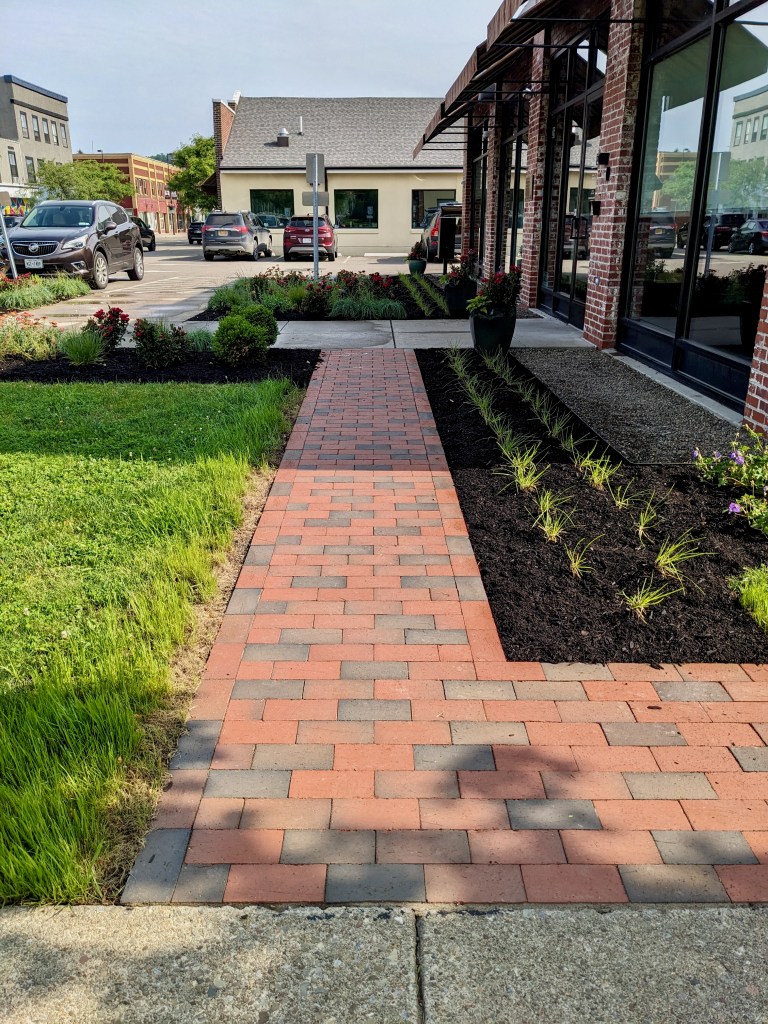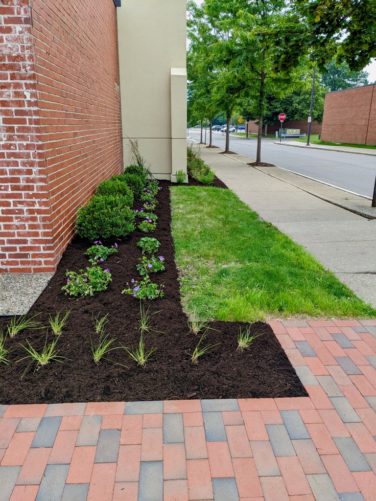 This public space was designed to provide color and visual interest in a high traffic area. Plant selections emphasize color and seasonal change while keeping most plantings under three feet to preserve clear sight lines. Planters are placed to provide a place for annual color.