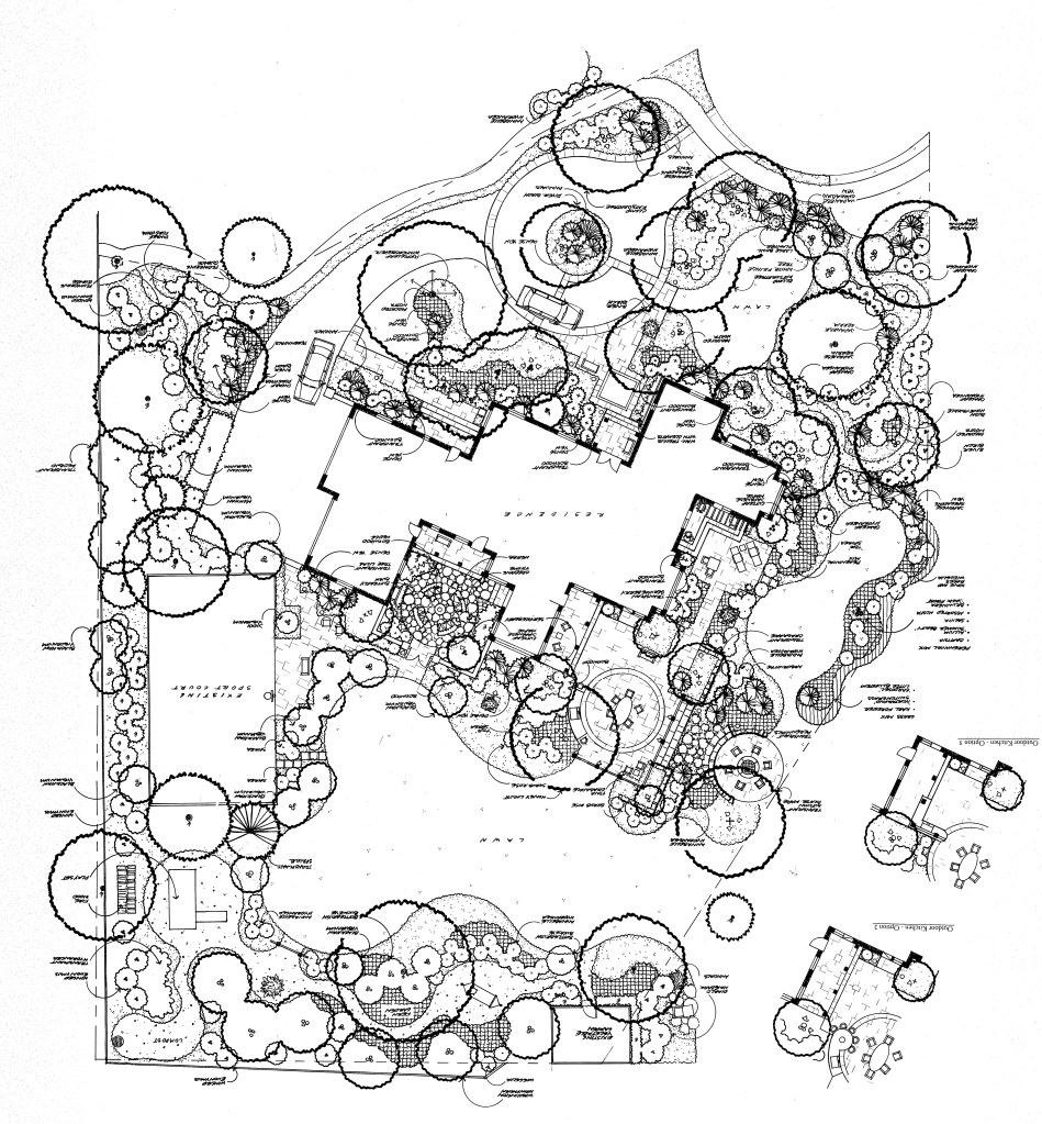 This design was truly an extension of the home, allowing for an indoor-outdoor living experience. Creating a kitchen, living room and dining room outside was perfect for the large site and the client’s entertaining needs. The large pergola creates the doorways to the lawn and firepit which overlooks a pond. Features of the home were used as inspiration for the design. The pergola is a reflection of the columns used on the back porch of the house. The larger scale of the landscaped spaces reflect the scale of the home and property.